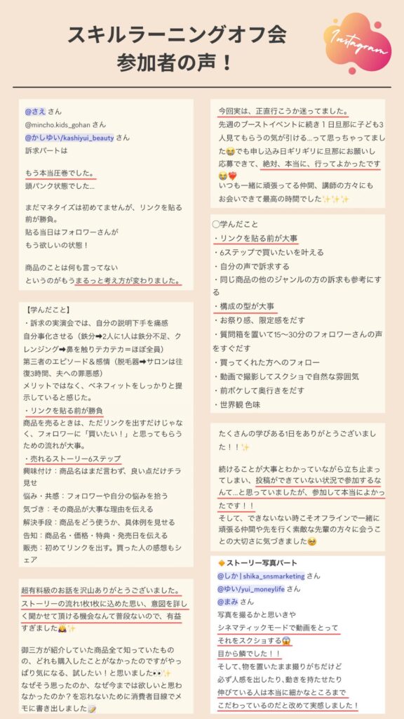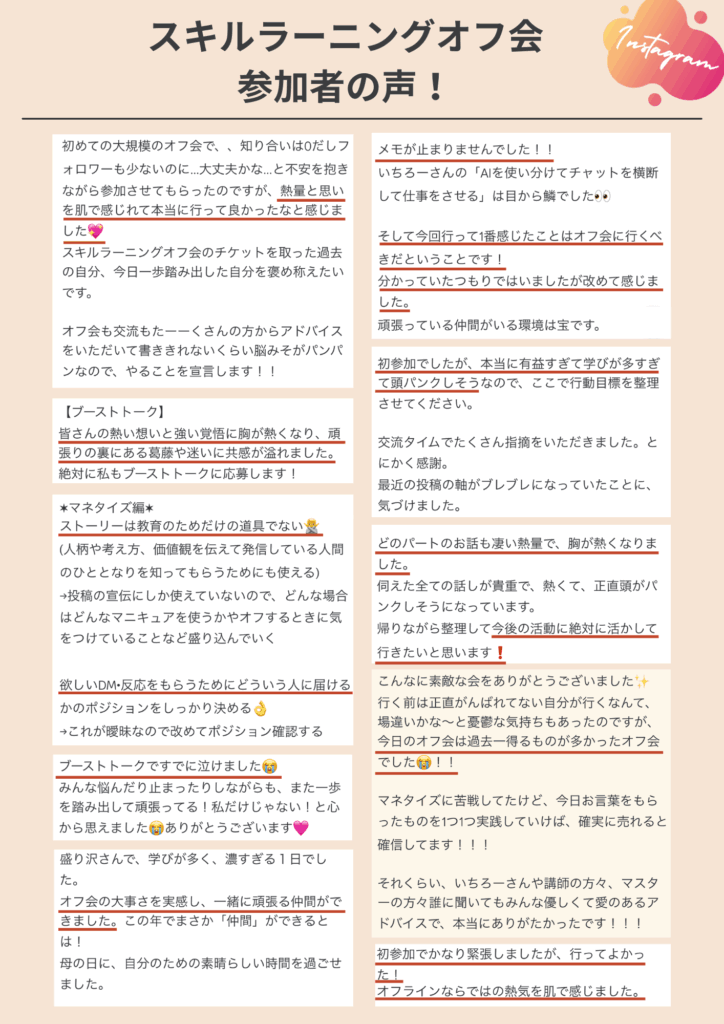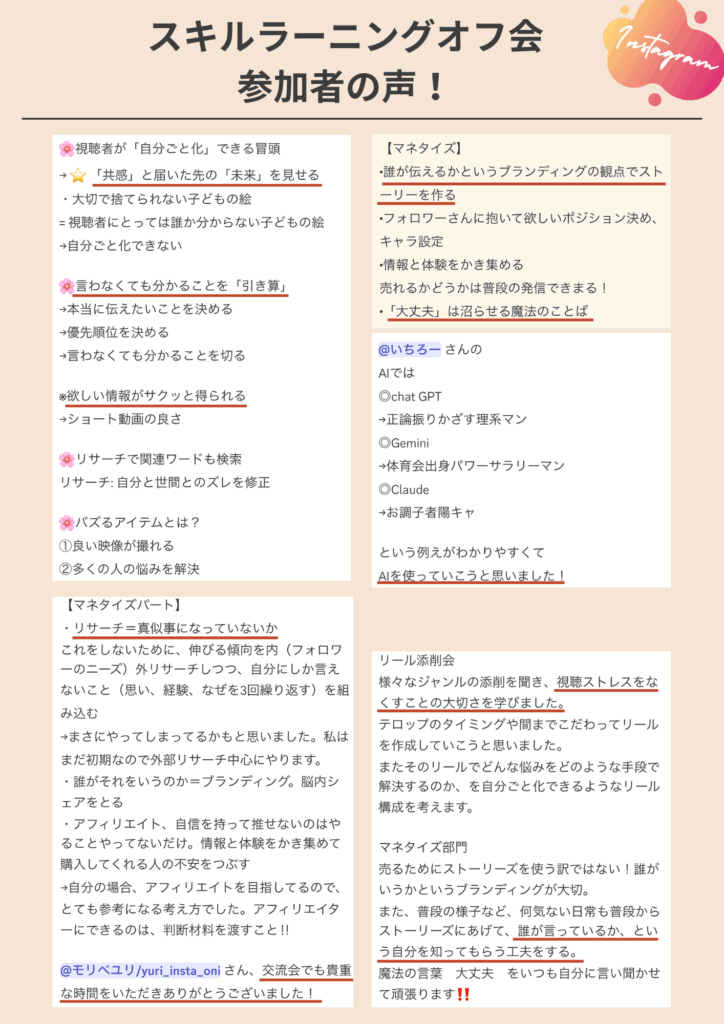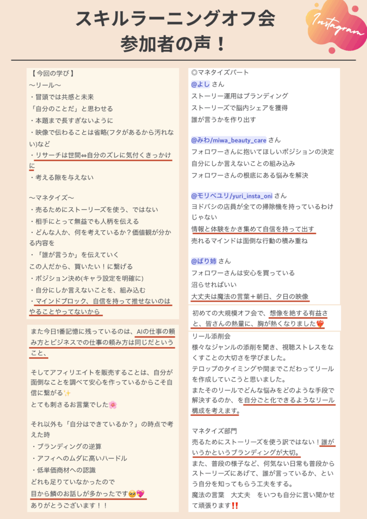 これまでにスキルラーニングオフ会に参加いただいた方から、