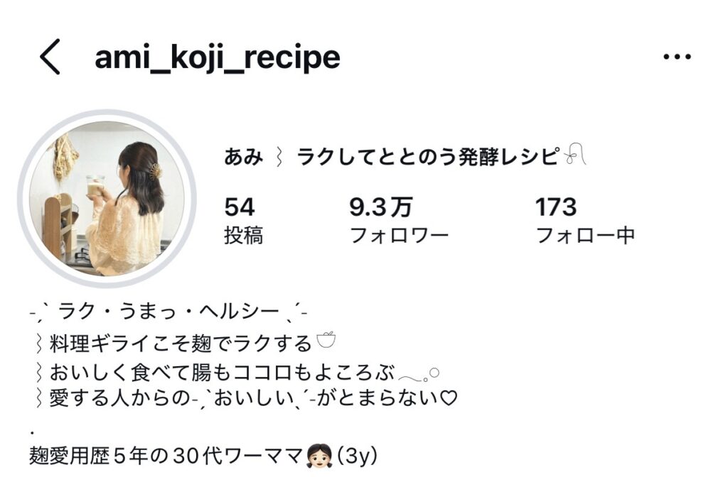 そんな悩みを抱えながら、日々の忙しさに追われているママは多いのではないでしょうか?今回ご紹介するのは、インスタグラムでの麹レシピの発信をきっかけに、わずか4ヶ月でフォロワー1万人を達成したあみさん(@ami_koji_recipe)です。
