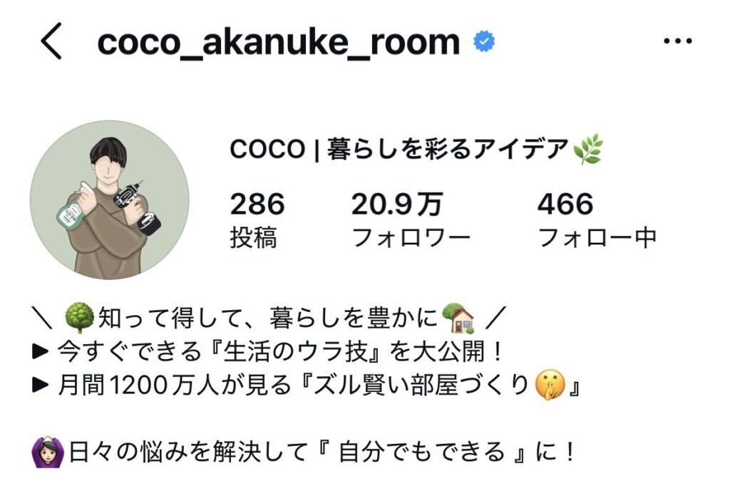 そんな拭えない将来への危機感を抱きながら建設業界で働いていたCOCOさん(@coco_akanuke_room)。フォロワーは着実に増えているのに、マネタイズには一切繋がらないという「100均特化アカウント」特有の悩みに直面していました。