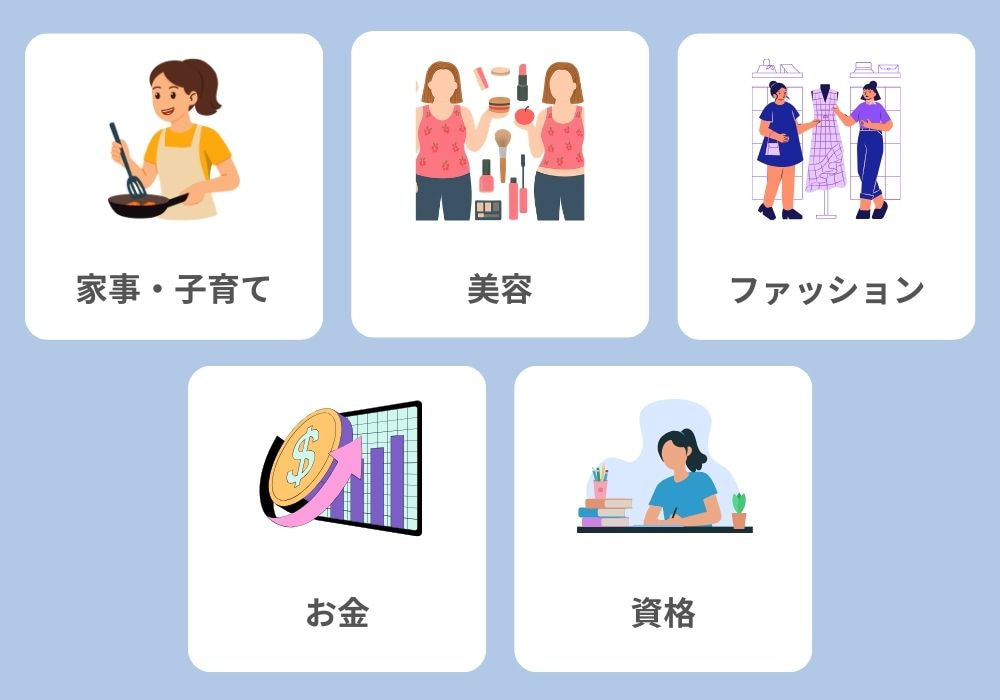 本章では、インスタグラムで主婦が稼げるおすすめジャンルを、以下5つ紹介します。