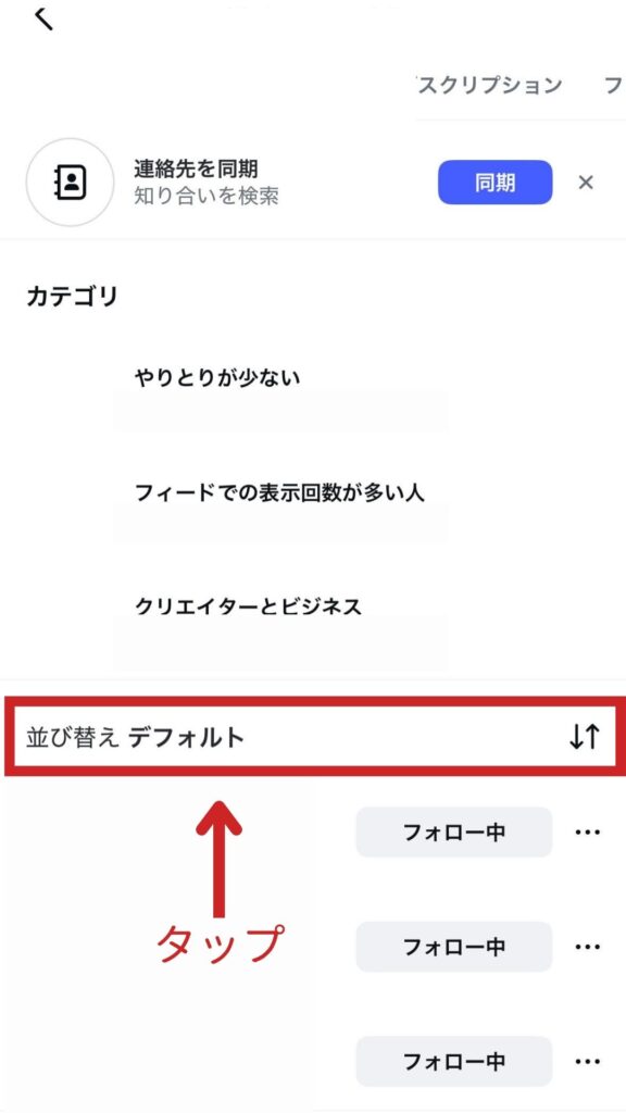 「フォロー中」リストが表示される画面で、「並び替え」をタップすると並び順の設定を変えられますよ!
