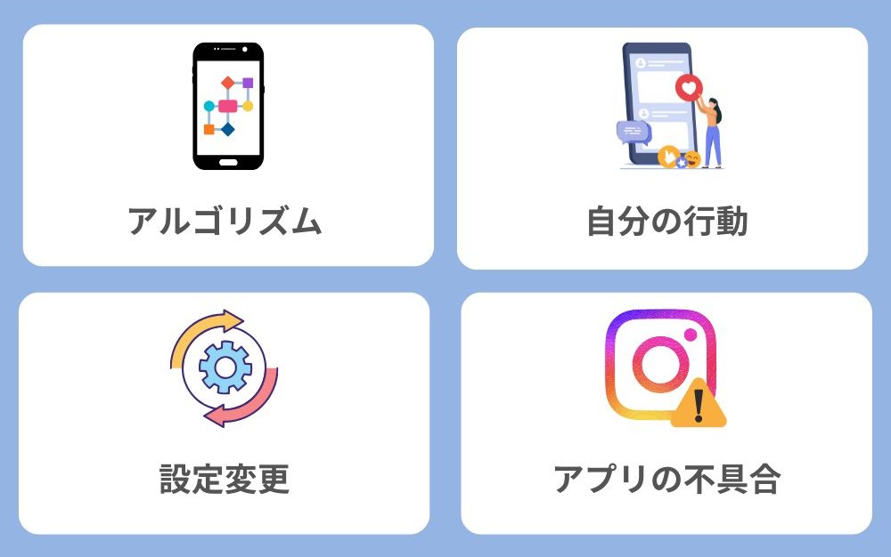 アルゴリズムとは、インスタグラムユーザーの興味や行動に基づいて、投稿やアカウントの露出度を決める仕組みのこと。