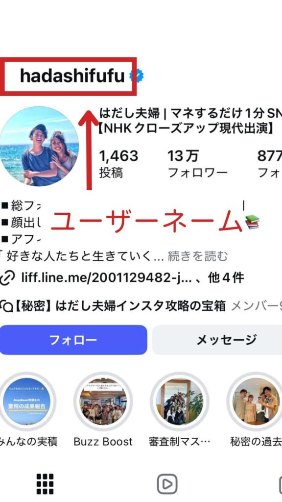 ありさわたしたちのアカウントで例えると、ユーザーネームは以下の部分!