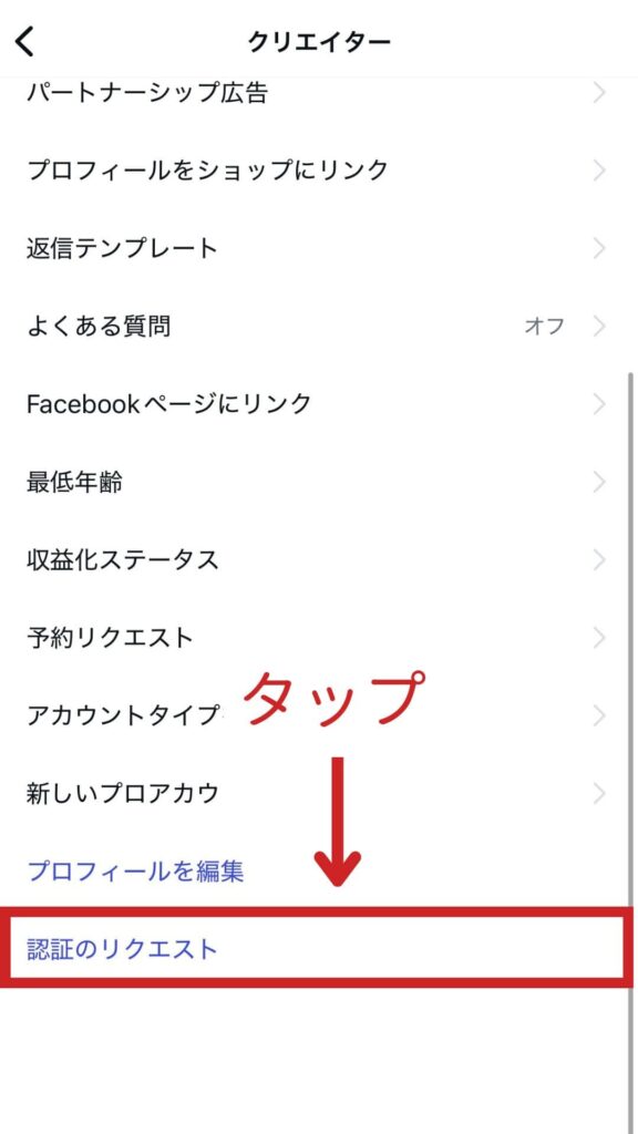 つづいて、一番下にある「認証のリクエスト」をタップします。