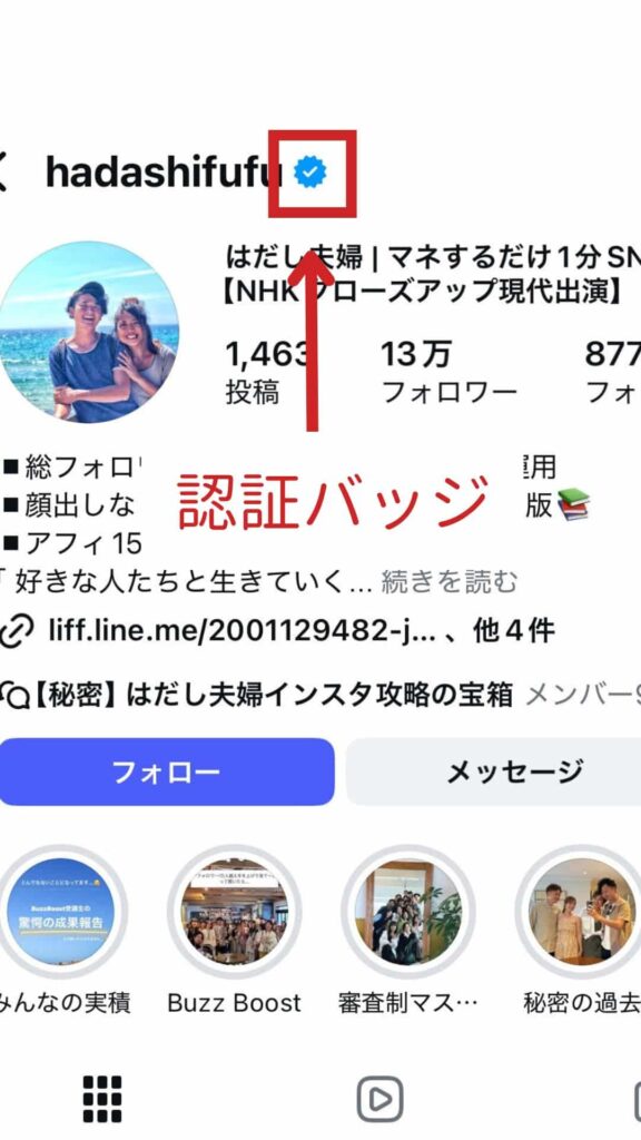 というのも、認証バッジはMeta社が本人・公式であると認めたアカウントにのみ付与されるマークです。