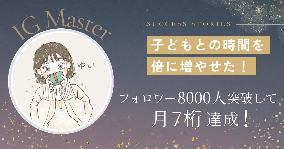 しかし、ゆいさんはIG Masterへの入会をきっかけに発信の基準値がガラッと激変!フォロワー約8,000人の壁を突破し、月7桁の成果を達成します!そして、現在はフリーランスとして働くことで、子どものお迎えが1.5時間も早まり、年間で約1ヶ月分もの親子時間を増やせました。そんな理想の生き方を叶えた舞台裏を詳しく伺いました。